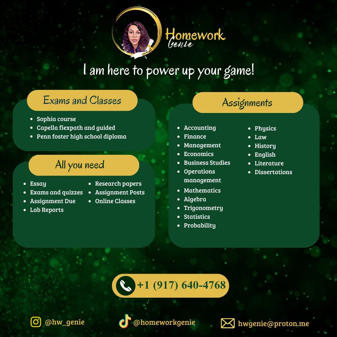 Homework Genie has been doing my classes since my undergrad days and I am now doing my masters, which she is helping me with.
